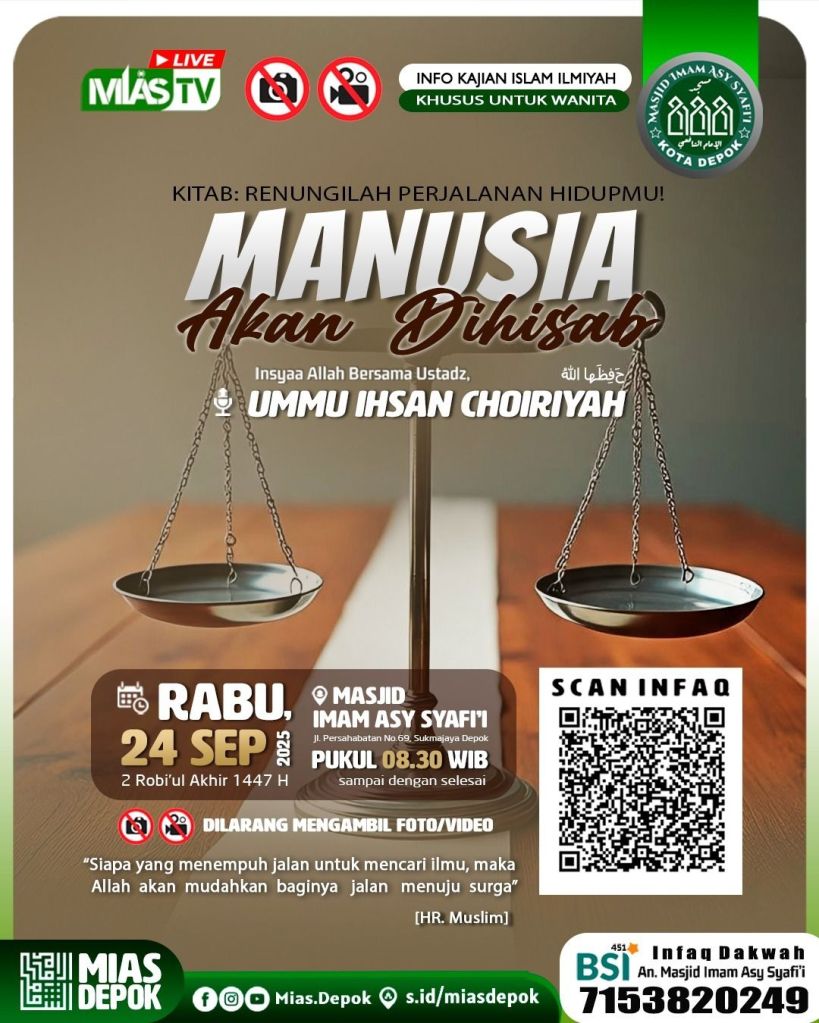 Semua amal kita akan diperhitungkan. Kita yang akan dihisab harus yakin dengan berita ghaib. Iman itu bertingkat, bisa bertambah dan berkurang. Selain majelis ilmu, tidak ada tempat lain yang bisa menasihati kita dengan durasi sekian lama. Pandai-pandailah kita menasihati diri sendiri