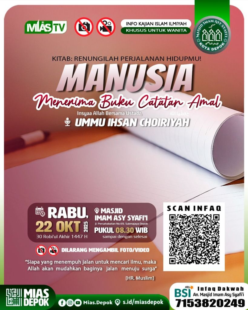 Kajian Kitab ‘Renungilah Perjalanan Hidupmu ‘ ustadzah Ummu Ihsan – MIAS Depok – Rabu, 22 Oktober 225