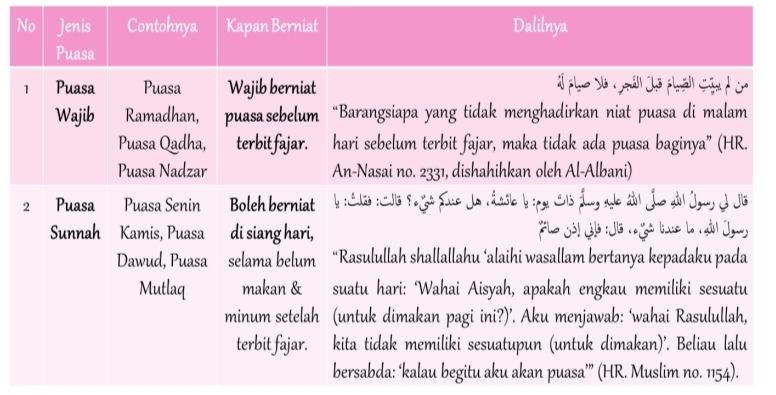 Dari Umar radhiyallahu ‘anhu, bahwa Rasulullah shallallahu ‘alaihi wa sallam bersabda, “Amal itu tergantung niatnya, dan seseorang hanya mendapatkan sesuai niatnya. Barang siapa yang hijrahnya kepada Allah dan Rasul-Nya, maka hijrahnya kepada Allah dan Rasul-Nya, dan barang siapa yang hijrahnya karena dunia atau karena wanita yang hendak dinikahinya, maka hijrahnya itu sesuai ke mana ia hijrah.” (HR. Bukhari, Muslim, dan empat imam Ahli Hadits) - Kapan harus berniat