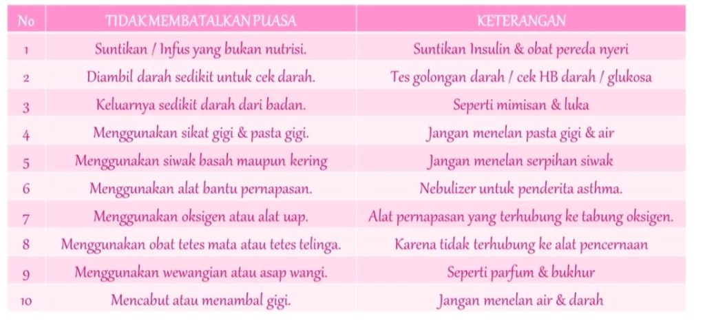 - Serupa makan dan minum: transfusi darah, infus nutrisi, suntik nutrisi/ vitamin