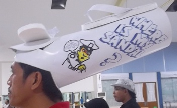 Ruangan kafetaria yang cukup panas karena AC-nya dimatikan pun bergelora dengan riuhnya pembacaan teks yang dilakukan bersama ke-199 anak-anak.